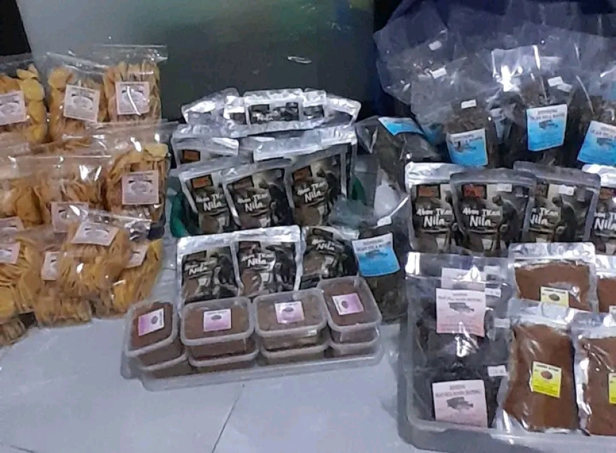 Hasil olahan Ibu -Ibu Kader TP PKK Desa Margamukti dan Kelompok pengolah Ikan Sinar Mukti berupa Comring, Abon Ikan, Abon Ayam, Dendeng Ikan merupakan salah satu produk unggulan Desa Margamukti.