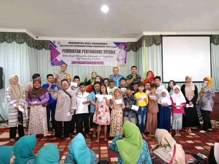 Pemerintahan Desa Margamukti Kecamatan Sumedang Utara Kabupaten Sumedang Melaksanakan Kegiatan Santunan anak yatim dan Penguatan Penyandang Difabel Dalam rangka meningkatkan keterampilan dan kesejahteraan bagi penyandang Disabilitas.