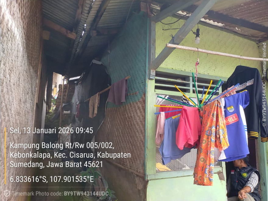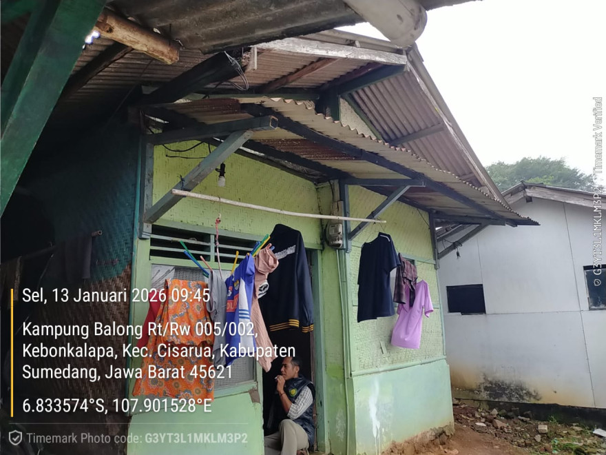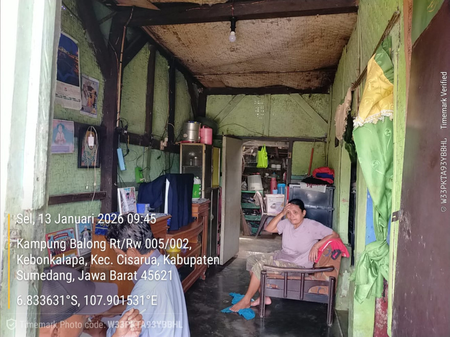 Anggota BPD dan TPK Desa melaksanakan monitoring langsung mengecek kondisi rumah ke salah satu warga yang rumahnya akan direhab karena sudah tidak layak untuk ditempati an. Yuyun Dusun Balong RT 5 RW 02