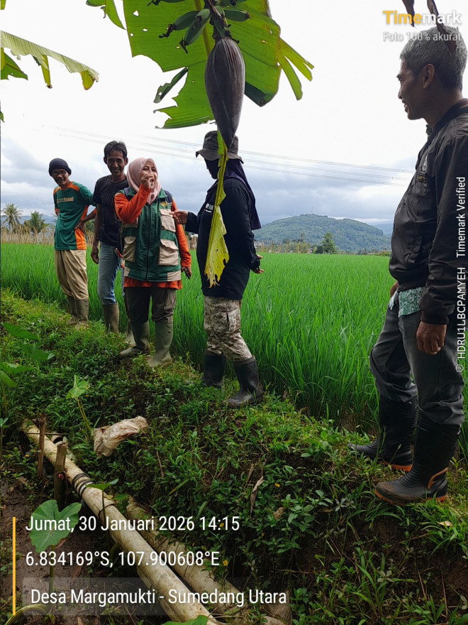 UPTD Pertanian melaksanakan kegiatan koordinasi dan monitoring lapangan bersama Kelompok Tani Mukti sebagai tindak lanjut atas kondisi saluran cacing yang berperan penting dalam mendukung sistem pengairan lahan pertanian